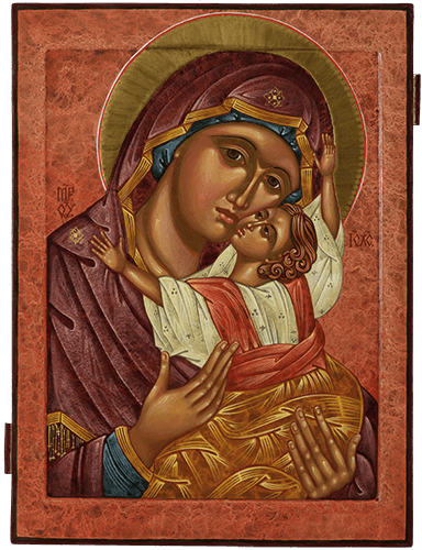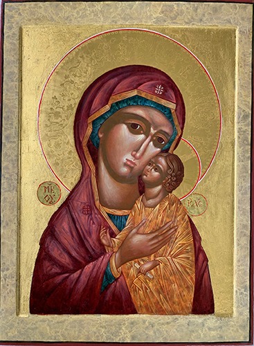 Mother of God, Loving Kindness, Egg tempera and gold leaf on poplar board,